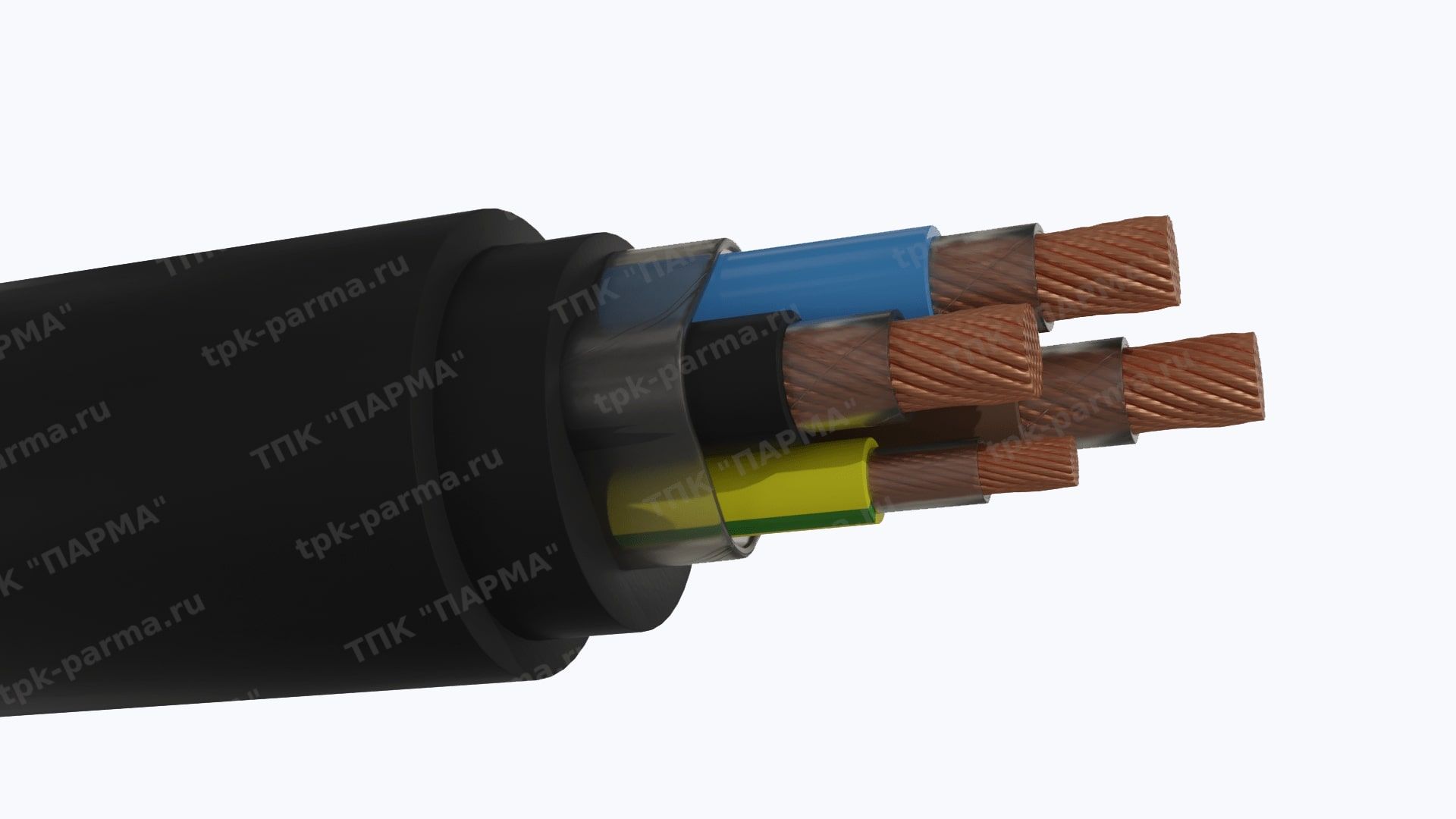 1. Пять токопроводящих многопроволочных медных жил с площадью номинального поперечного сечения 16 мм2, соответствующих 5 классу по ГОСТ 22483-2012.