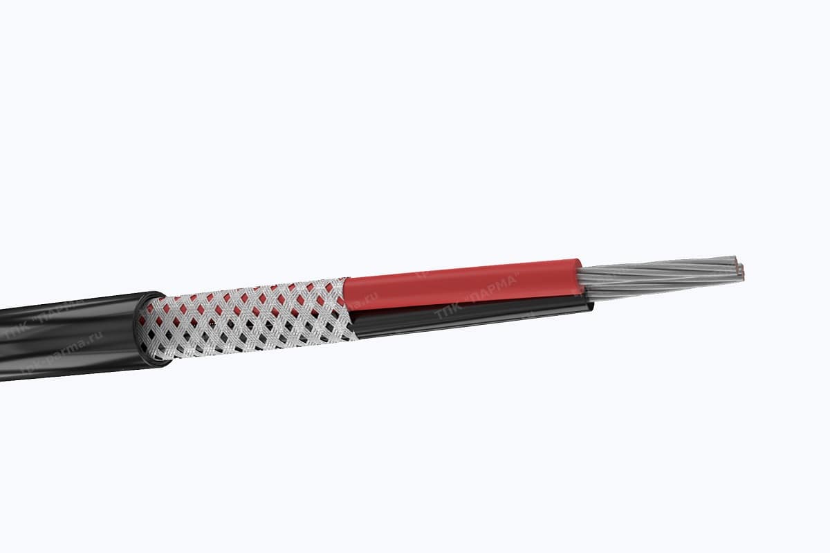 1. Две многопроволочные медные лужёные токопроводящие жилы с площадью номинального поперечного сечения 0,12 мм2, которая соответствует 4 классу по ГОСТ 22483-2012.